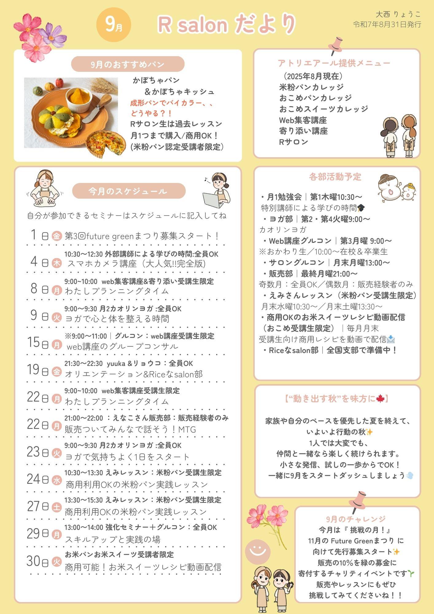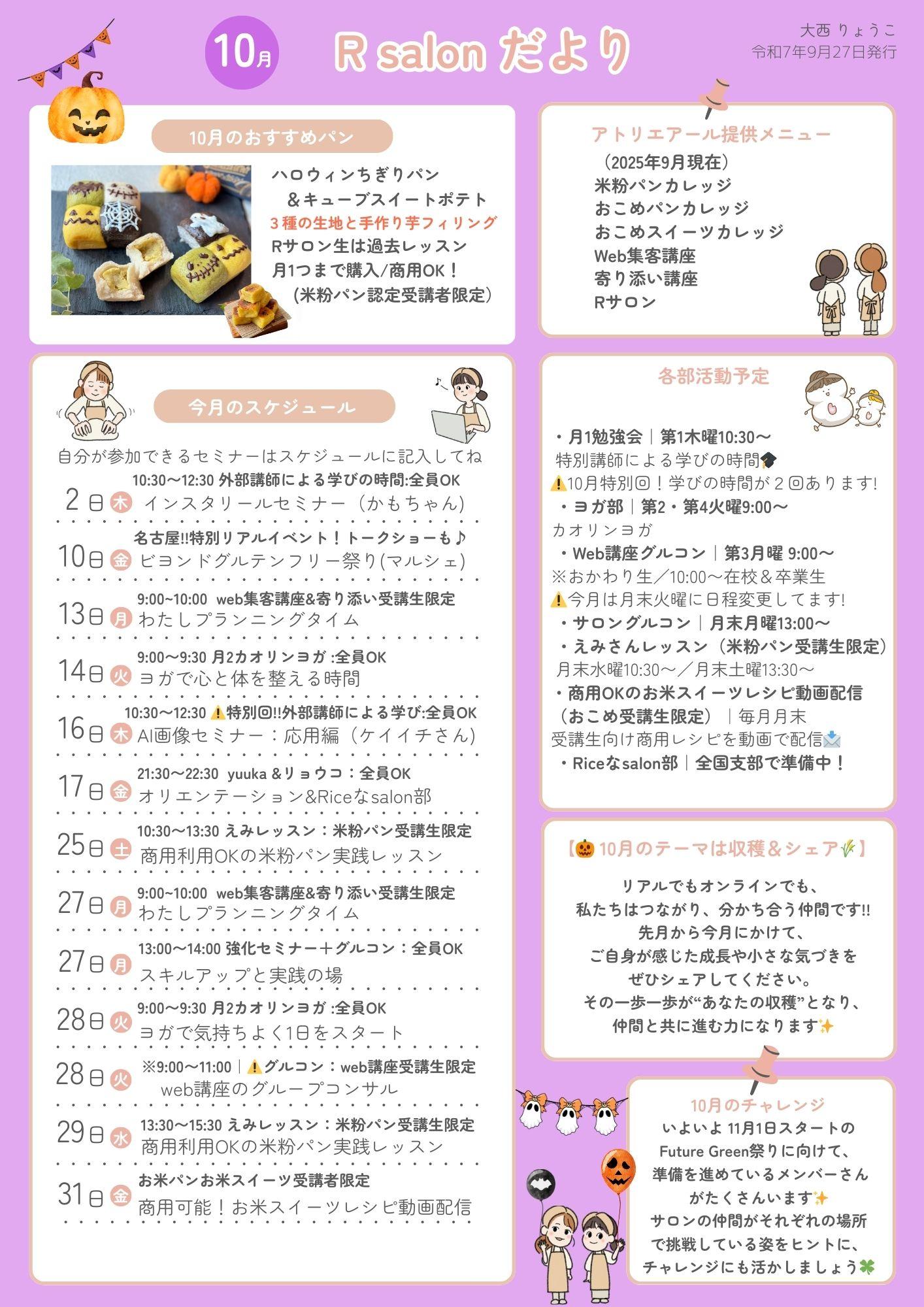 今後のサロン予定、過去の米粉パンレッスン&勉強会のアーカイブ視聴などにお役立てください。